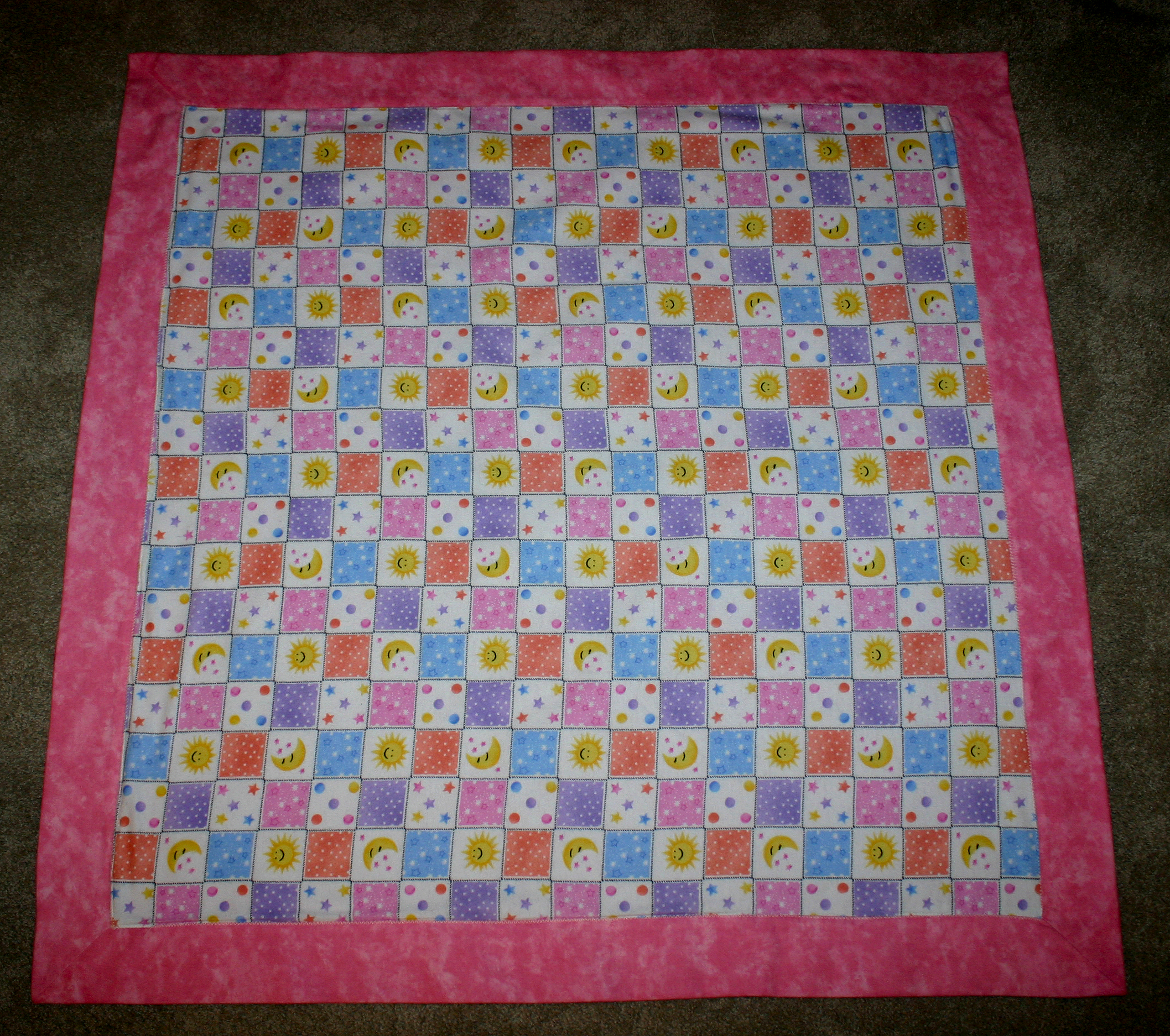 Rosie gets a little chilly sometimes, so her Mom asked if we could make her a couple of receiving type blankets that she could wrap her in ….. of course we could. We made 3 colour ways for Rosie, yellow, pink and her favourite…. purple.