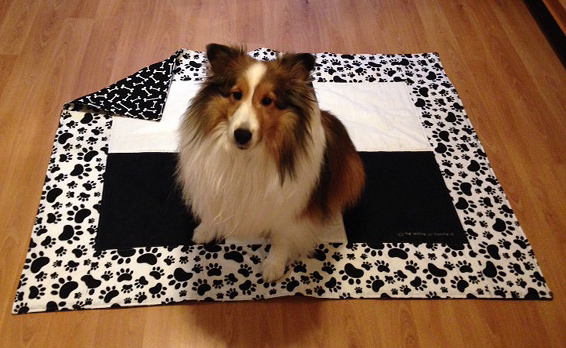 While at our Meet & Greet event at Pet Food N More last week, we had all our pet blanket tops and some completed blankets on display. The Black and White pet blanket caught this sweetie’s Mom’s eye, and it went home with her that day! Suits her to a tee, don’t you think?