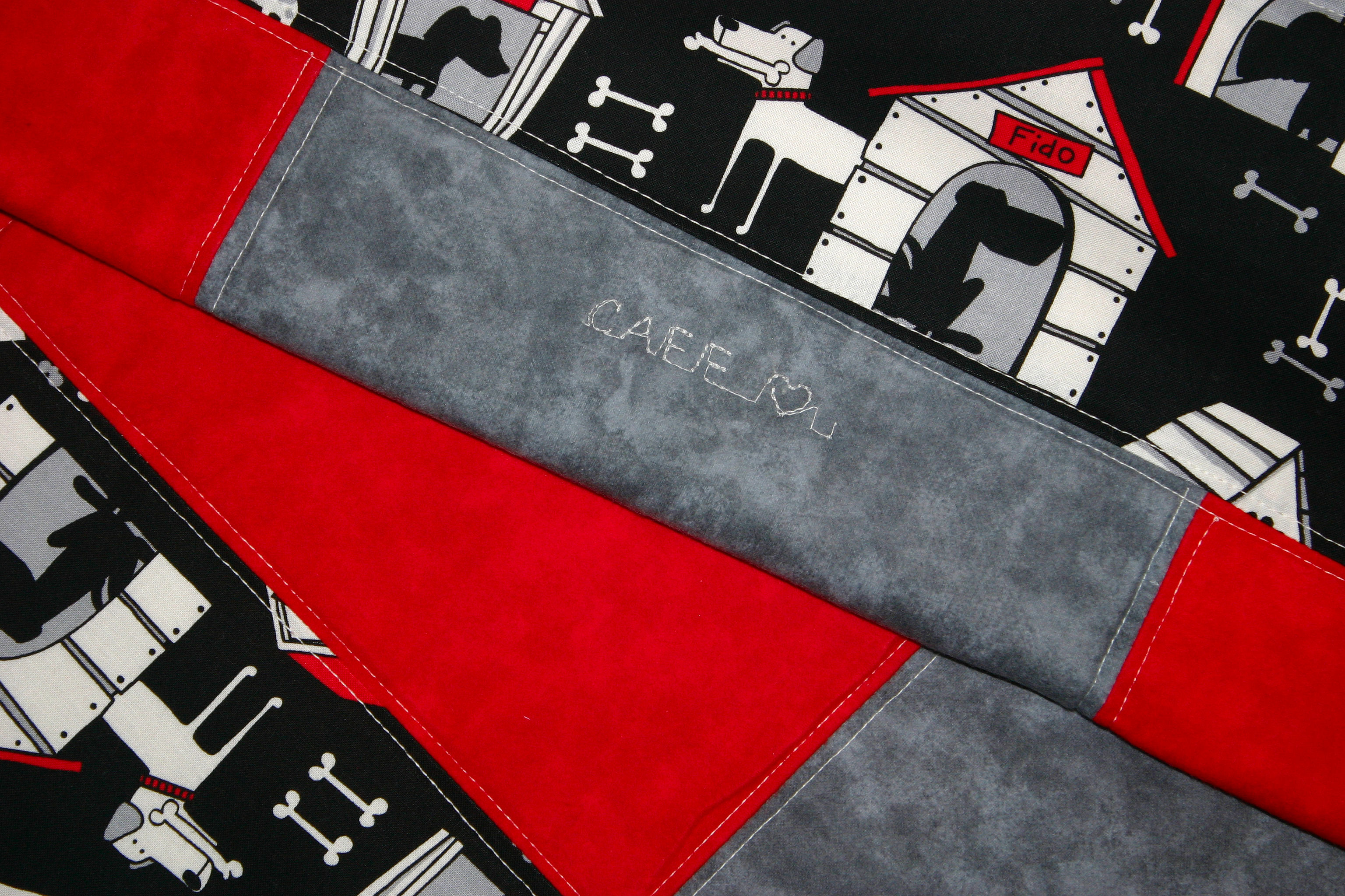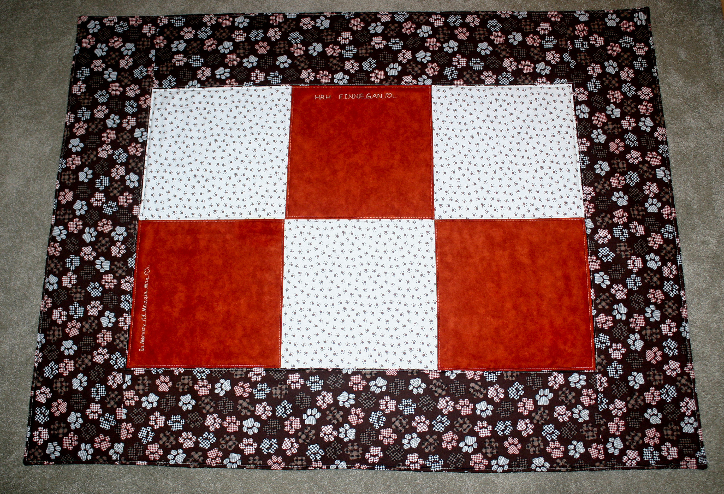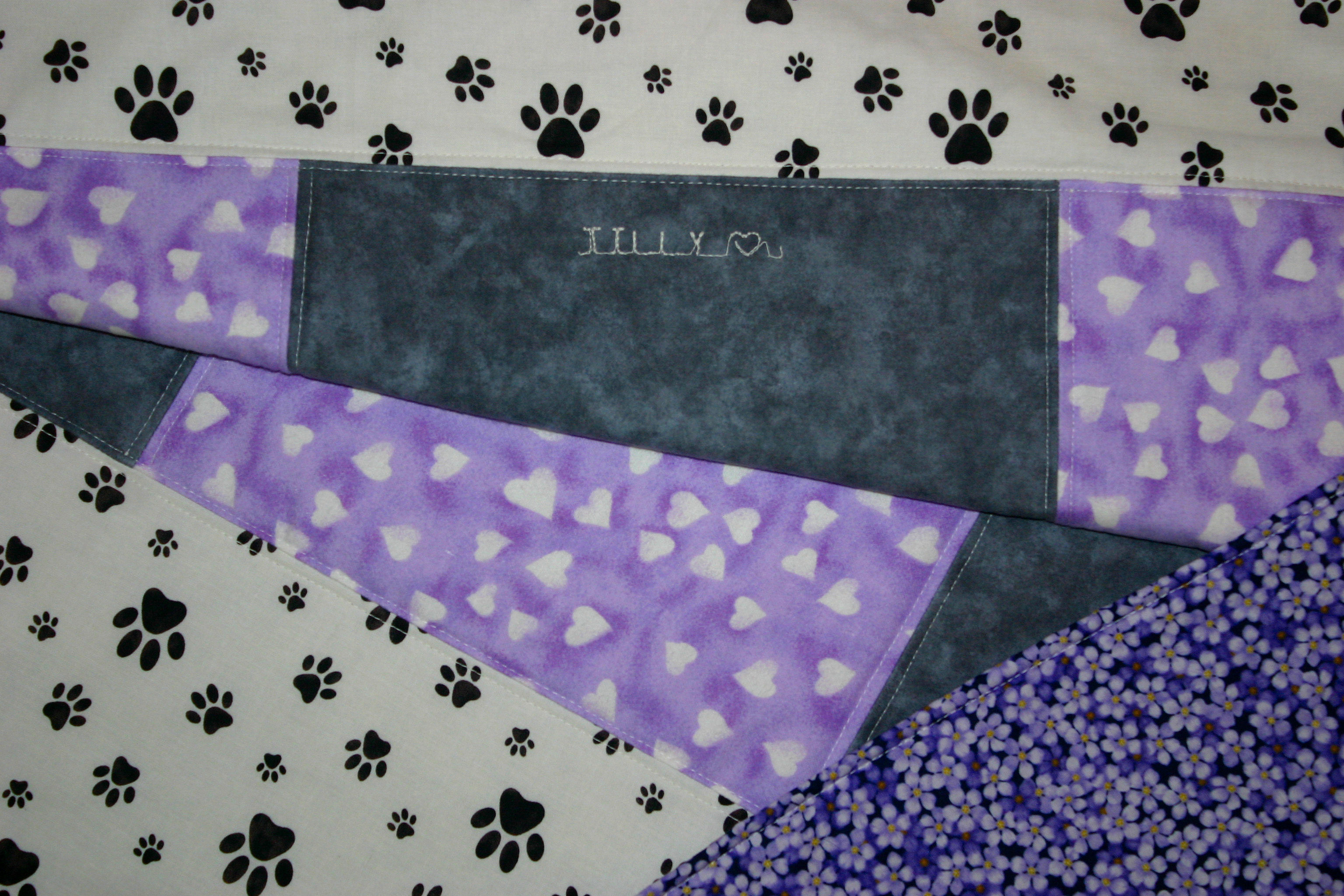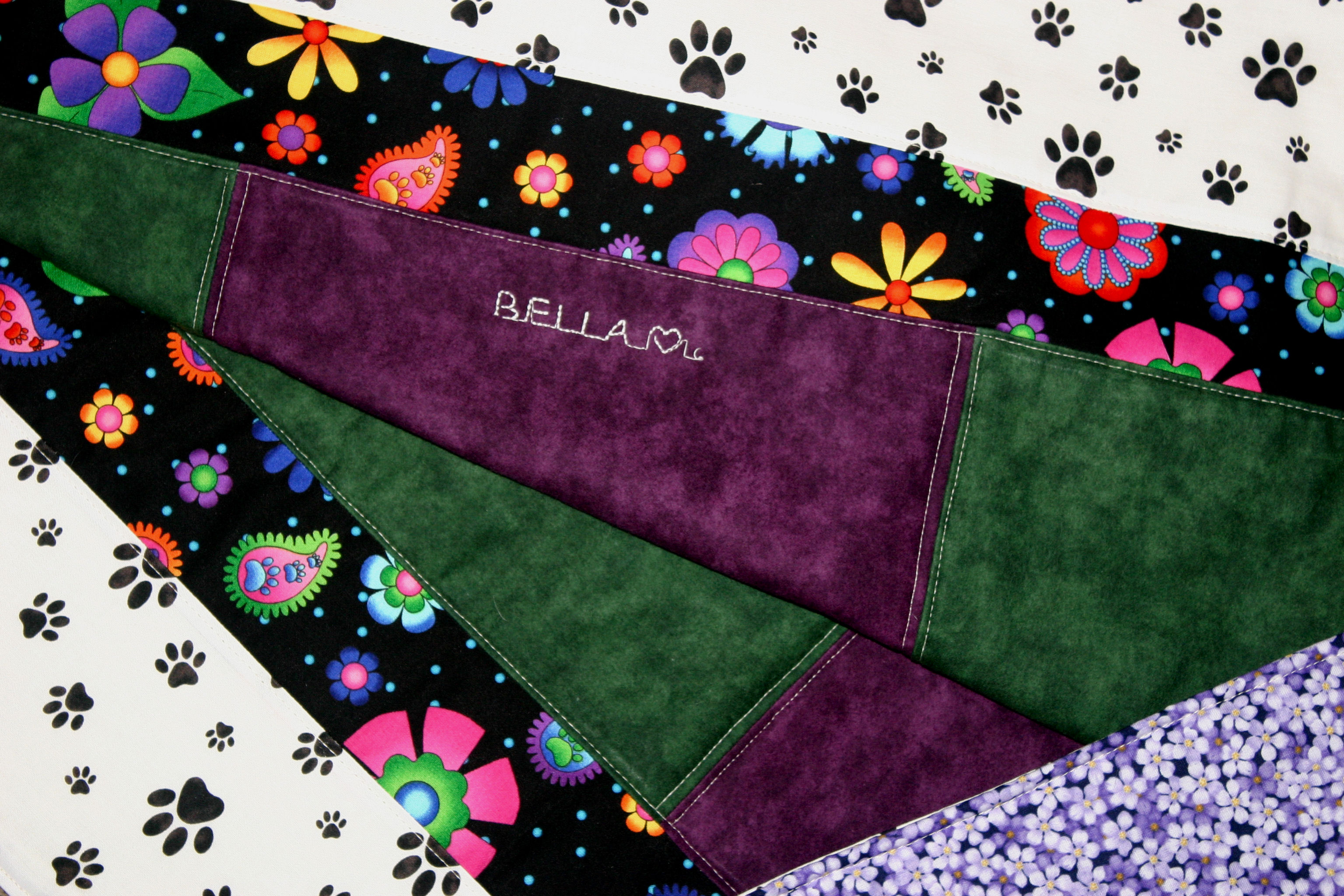 If you are wondering and want a chuckle as to what HRH stands for on Finnegan’s blanket …… “HIS ROYAL HIGHNESS” and Bella’s Mom had a very special request, she wanted her blanket to be just like Maggie’s, so we found a small bit left of the colourful border print that we were able to incorporate.