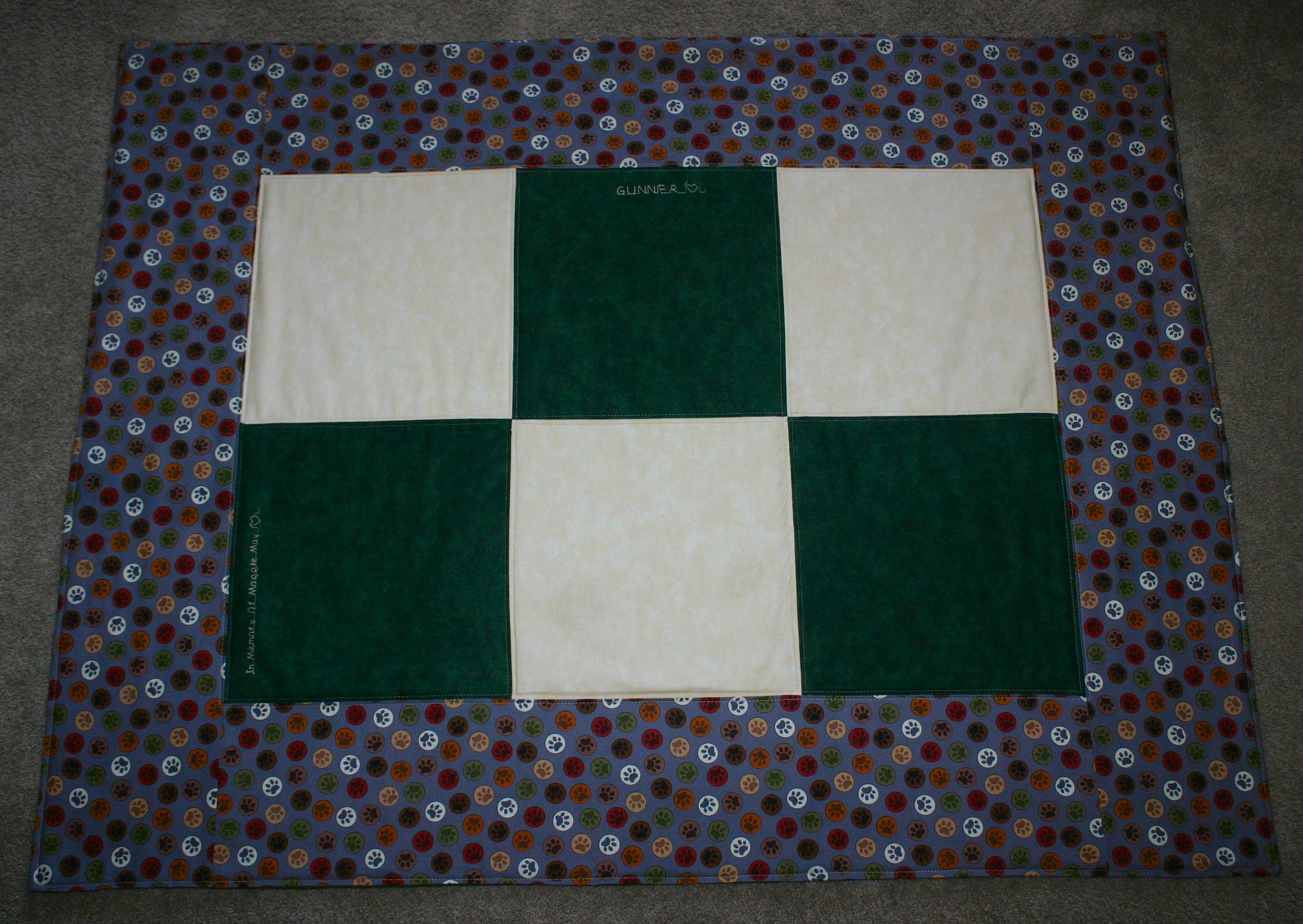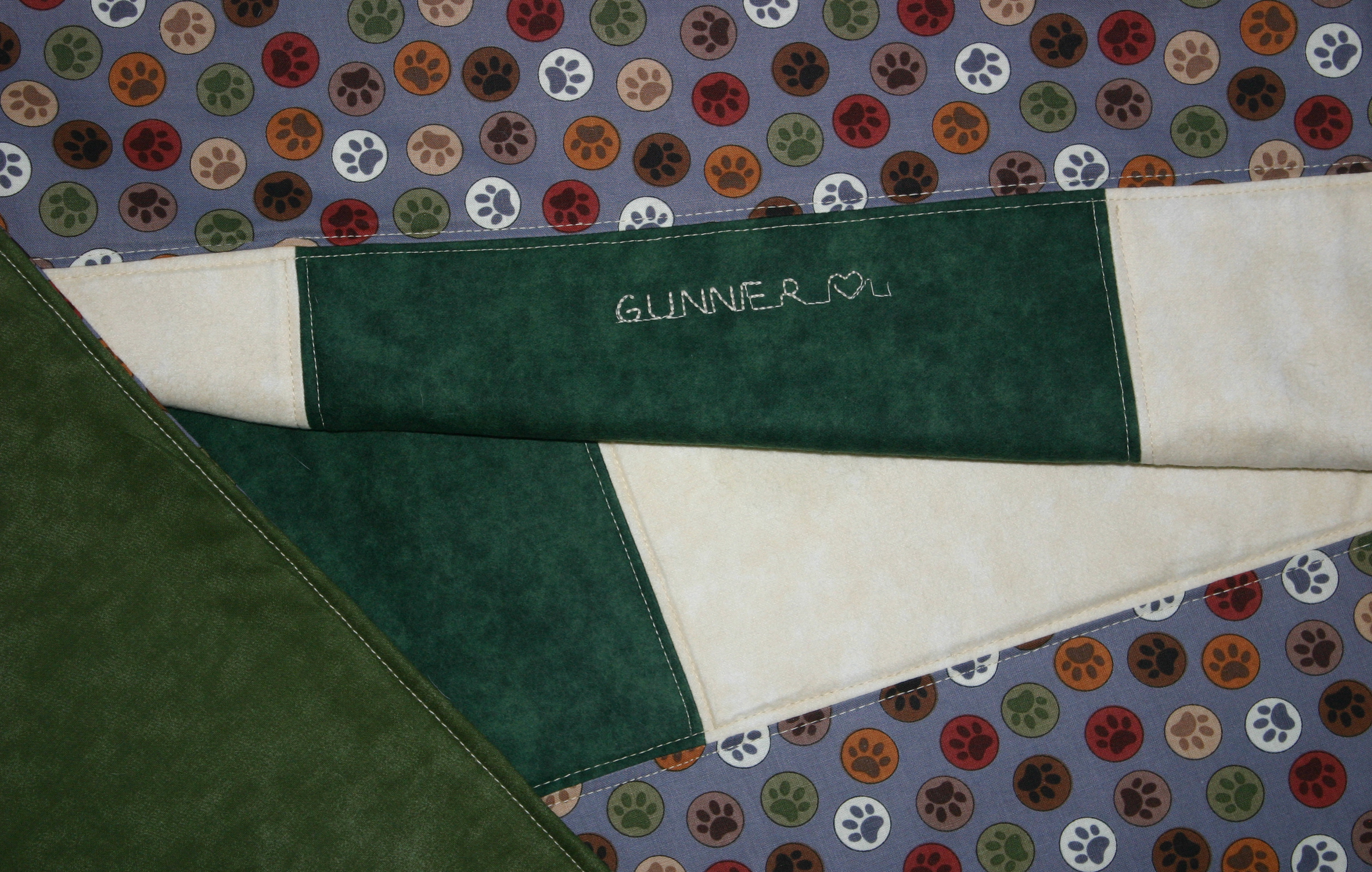 Gunner is already one spoiled little boy, with a Maggie May blanket and 2 crate pads under his belt. His Christmas gift was to be a surprise, but someone couldn’t wait, so he now has his second Maggie May blanket …. and he is only 5 months old!