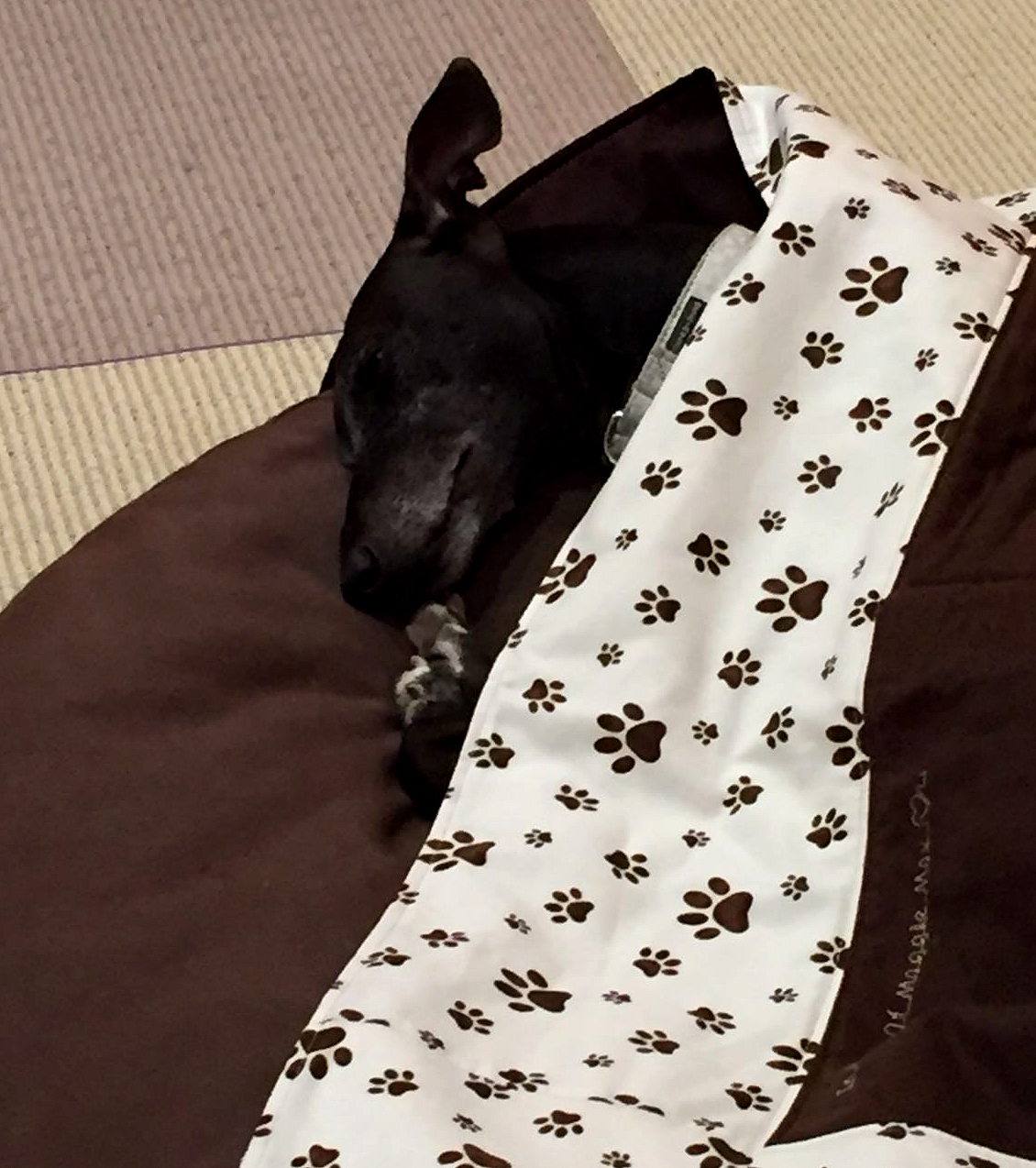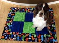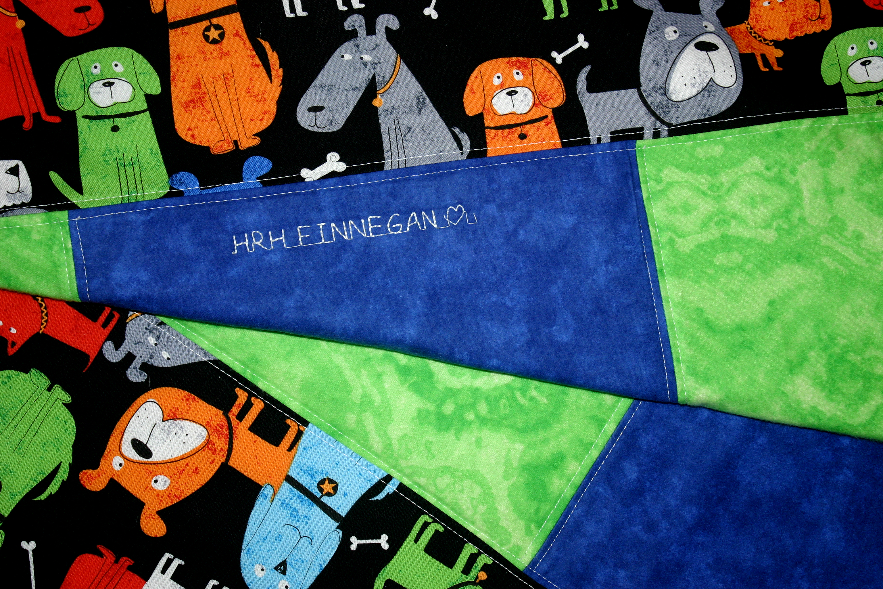 We are always working on raising funds for the memorial account, and these lucky pups recently received their custom Maggie May blankets! Milo is looking cool in blues, His Royal Highness Finnegan is reigning over his colourful blanket, Fysti is just simply adorable in bright orange, Shine is comfy cozy and snoozing away in her blanket that matches Poppy’s, who will be arriving very soon!