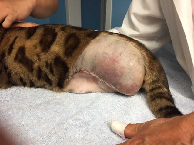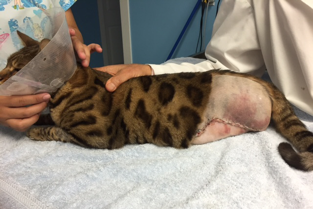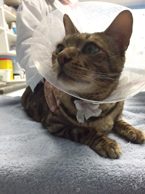 Buddy had his surgery on Sunday afternoon, but unfortunately the infection had spread. The specialist felt an amputation was in Buddy’s best interest and our own medical consult, Dr. Walton, also agreed. Animals are amazing as we all know and can manage quite well after an amputation. Buddy was home by Monday and doing ok, but being a Bengal he is quite rambunctious, so he is back in hospital for a few days to ensure he rests and starts his recovery out right.