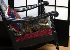 Congratulations to Cathy Chambers! We were delighted to deliver Cathy her one of a kind quilt yesterday. She was very excited!! We met Cathy at the Pet Lover show in February when she ordered a personalized Maggie May blanket for her Edwin & Marlena, one of the few kitties in this years quilt.