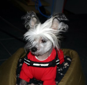 We have been looking for Chinese Crested fabric ever since. We finally found the perfect print at Spoonflower Designs, and delivered his custom blanket on Friday.