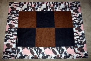 Sweet Kira was surprised with her Maggie May blanket this Christmas and we were delighted to use fabric from Spoonflower Designs in her creation.