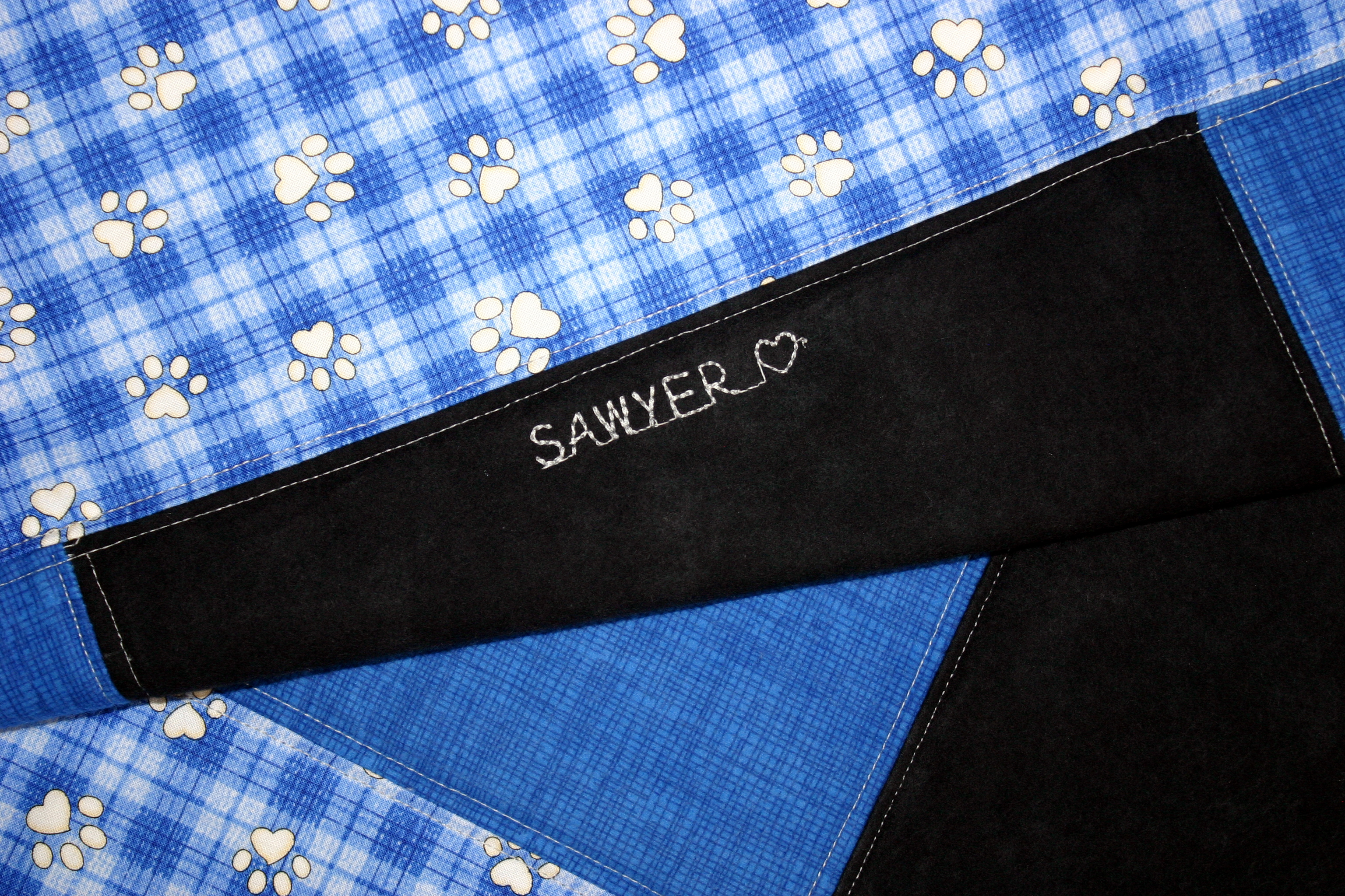 We love the blues that were chosen for Sawyer’s blanket by his Auntie and pal Rainier!