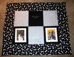 It is always an honour for us when we are asked to do a memory quilt, their story and the love for their pet touches our hearts. It took a bit to get it right but we finally did and delivered it last week.