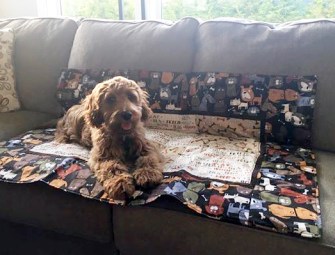 A custom creation for Brodie, with the prints specially selected by his Aunt, his one of kind MM Blanket arrived on Friday. Brodie says thank you Aunt Carmen and Uncle Chris for his blanket, and we thank you for supporting the Maggie May Fund.
