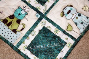We raised $420 for the Maggie May fund, and we thank you! We also want to thank again Sharon, Mom and Tammy of Sugar Town Quilting for their help in making this beautiful, one of a kind quilt, dedicated to all our pets, and their very sweet kisses of love.