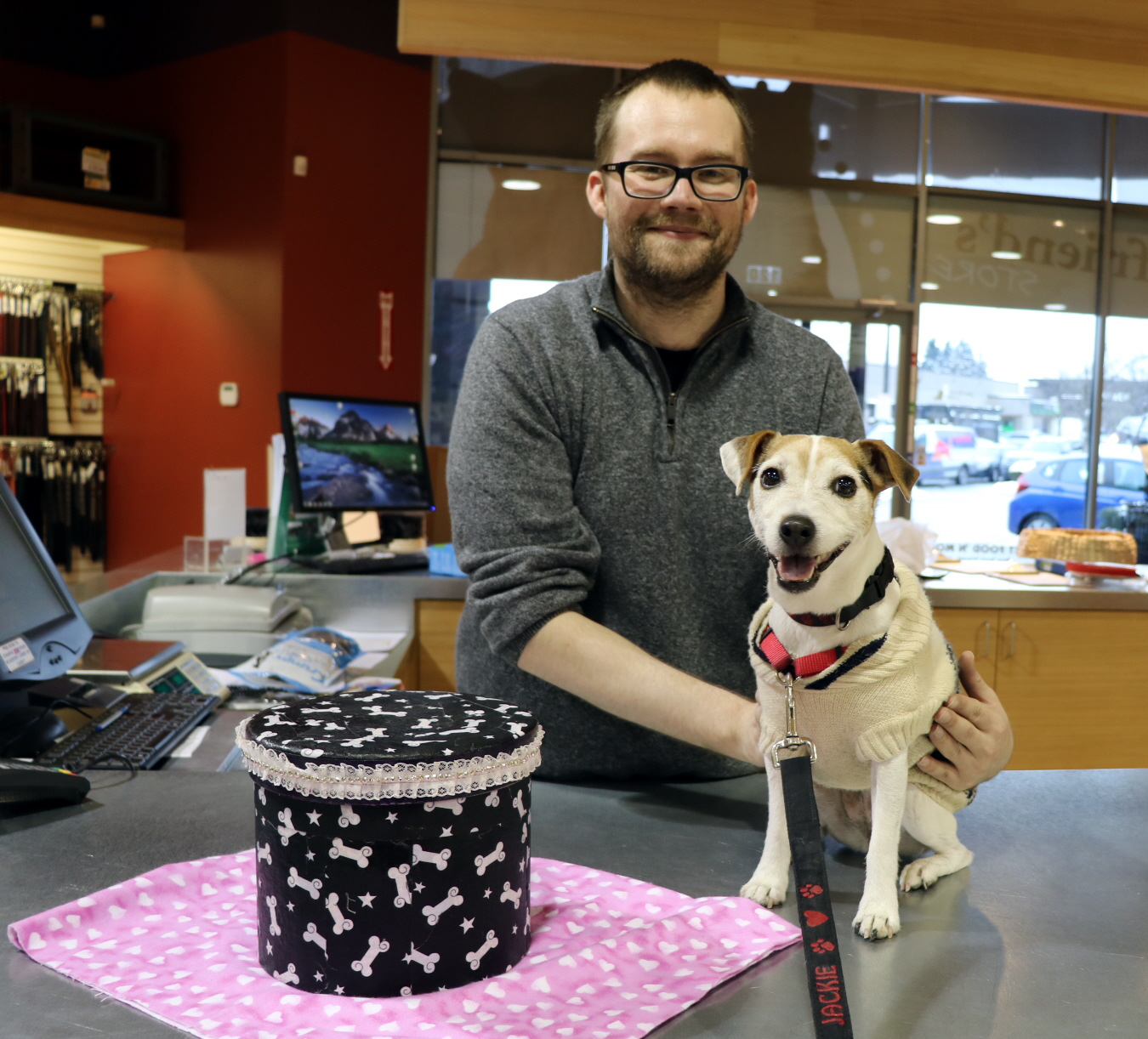 We had a wonderful response to Maggie’s Birthday Blanket Contest, 42 to be exact, including a Goat! Being that it would have been Maggie’s 20th Birthday, we decided to surprise everyone and give away 2 Maggie May Blankets this year. At 4pm on February 14th, off we went to Pet Food N More, where Zach pulled the lucky winners, after our Supervisor Jackie blessed the lucky draw bucket and got herself a treat of course! Needless to say, the winners were over the moon with excitement, Congratulations Terry & Ray. We are looking forward to creating your very own custom Maggie May Blanket! Stay tuned!